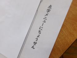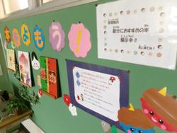 | 今日から今学期の給食が始まりました。栄養士さん、調理員さん、担当の皆様今学期も栄養たっぷりでおいしい給食をよろしくお願いします。「明るいあいさつ かがやく笑顔 みんな仲よく高木小」 | ||