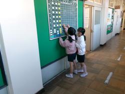| 今日は新学期が始まって子どもたちの様子を見ていただこうと授業参観日を設けさせていただきました。お忙しい中でしたが、ご来校いただきありがとうございました。今後ともよろしくお願いいたします。「明るいあいさつ かがやく笑顔 みんな仲よく高木小」 | ||