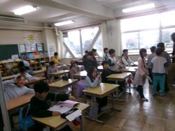 | 今日はLATと元気に楽しく英語に触れました。「明るいあいさつ かがやく笑顔 みんな仲よく高木小」 | ||