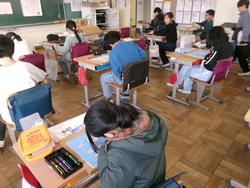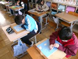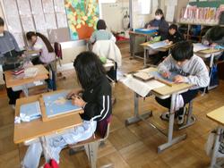| 今日は外部から講師の先生をお招きして6年生が絵手紙教室を行いました。これまでの感謝の気持ちを絵と文字で表現する活動です。筆の使い方など細かなご指導もいただきました。6年間のそれぞれの思いが込められていて素晴らしいと思いました。卒業までさらに良い思い出を増やしていってほしいと思います。「明るいあいさつ かがやく笑顔 みんな仲よく高木小」 | ||