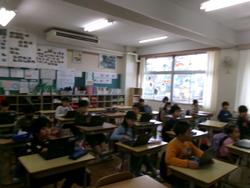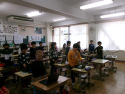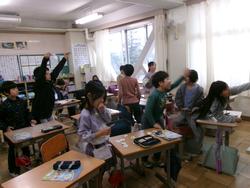 | 今日はLATと元気に楽しく英語に触れました。Practice makes perfect!「明るいあいさつ かがやく笑顔 みんな仲よく高木小」 | ||