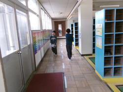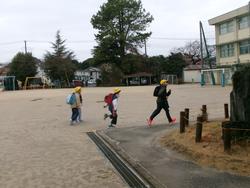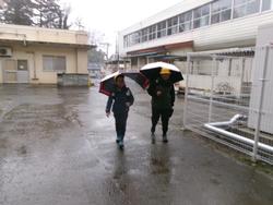 | 今日は土日の降雪の残雪を子どもたちは楽しんでいました。この辺りでは本物の雪は珍しいですからね。「明るいあいさつ かがやく笑顔 みんな仲よく高木小」 | ||