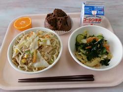 | 15 | 木 | みそラーメン、ココアむしパン、ちゅうかサラダ、きっかみかん、ぎゅうにゅう | |||