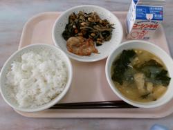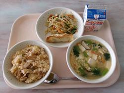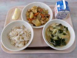 | 16 | 金 | ごはん、とりにくのピリカラやき、だいずとひじきのにもの、みそしる、ぎゅうにゅう | |||