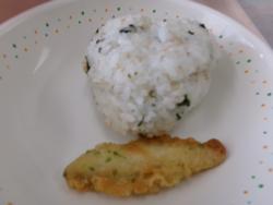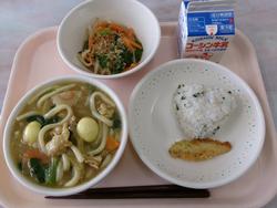 | 22 | 木 | カレーうどん、わかめおにぎり、わかさぎのフリッター、おろしあえ、ぎゅうにゅう | |||