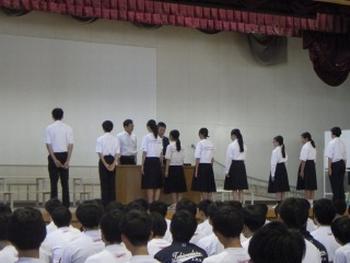 表彰式では、部活動の新人戦や理科作品展の表彰が主に行われ、生徒も良い表情で壇上に上がっている姿が見られました。