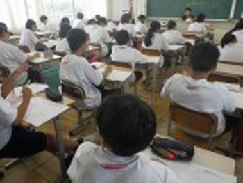 1年生の1学期まとめ集会が行われました。集会では、各学級や各委員会の代表生徒たちが、1学期の活動を振り返り、良かった点・改善点を挙げ、2学期に向けた目標を話しました。また、教員の方から、学習面・生活面についての話がありましたが、その話も生徒たちは真剣な様子で聞いていて、自らの成長や課題と向き合い、2学期に向けて頑張ろうという思いを感じました。