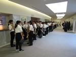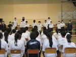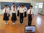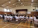 ○生徒会執行部任命式があり、旧メンバーから新メンバーへの引き継ぎが行われました。まず、旧メンバーがこの一年間の活動への想いを語り、続いて新メンバーがこれからの一年間に向けた抱負を語りました。新しい執行部には、旧執行部の実績を踏まえ、さらに常中生の学校生活をよりよくする取り組みを進めてもらうことを期待しています。任命式後、松戸市国際スポーツ交流事業及び長崎平和大使に参加した生徒たちからの報告がありました。