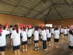○生憎の空模様だったため、体育館や格技場を使用して最後の応援練習を行いました。明日の応援合戦では各色趣向を凝らした応援が繰り広げられるのが楽しみです。放課後、できるところまでの準備を終わらせました。明日、爽やかな天候の中で実施できることを祈っています。