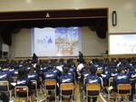 ○5・6校時、1年生が体育館で、来週の火曜日(21日)に実施されるディズニーランドでの校外学習に向けての集会を行いました。今回の校外学習では、キャリア教育の一環として「ディズニーアカデミー『おもてなし、仕事、コミュニケーション』」というプログラムに取り組みます。