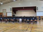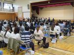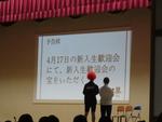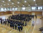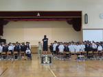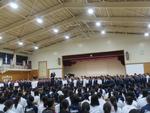 4月9日(木) 1年生2日目、朝読書の時間に3年生が教室に来て校歌指導を行ってくれています。14日まで実施予定です。3年生が丁寧に指導しながら「とても上手」「いい声です」と褒めてくれるので1年生も笑顔が多く見られました。2時間目は、学年集会が開かれました。校舎見学も行われ、廊下に飾られている掲示物や写真にも関心を持ったようです。 2年生は、4時間目に学年開きの集会が行われ、各先生の紹介等が行われました。午後は、グランドで学年レクを行っていました。新しいクラスの仲間と互いに声をかけあい楽しんでいました。 明日は、写真撮影を予定しています。