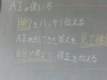 4月24日(金) 総合の時間に2年生では、「生成AIの使い方」を松戸市教育員からの資料で学習を進めました。情報モラルについて学び、その後実際にCanvaを使って絵の作成に挑戦していました。指示する言語が難しそうです。出来上がった作品に「かわいい」等声があがっていました。 3年生は、体育館で進路集会が開かれ今後の進路開拓に向けて進路指導主任から話がありました。受験までの時間は、みんな同じです。どう努力していくか・・・日々の生活が大切ですね。 放課後に、第1回全校委員会が開かれました。はじめに生徒会からスローガン「つくろうユートピア~声集未来・有言実行・個性共尊~」の説明後、各学年委員長決定、目標設定が行われました。ここからどんな自治活動が展開されるのか楽しみです。