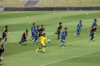 前半、全国の舞台でも常中サッカーが華開き、5分で先制点を奪い、15分に追加点、理想通りの形でクーリングブレイクを迎えます。その後も相手の良さを消しながら試合を展開して前半を2-0で折り返します。