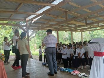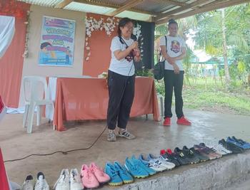 7月にはスパイク等のご寄付をいただき有難うございました。ご寄付をいただいたスパイク等について、現地での写真を入手しましたのでご報告いたします。 今回はフィリピン南部ミンダナオ島の中でも、行政の支援が手薄で、かなり貧しい山間部の学校に寄付をされたとのことで、現地での贈呈式の写真を送っていただきました。学校の先生からは、サッカーというより外での活動全般に使わせていただきます、とのお話だったそうです(裸足で生活しているお子さんも多いようなので) |