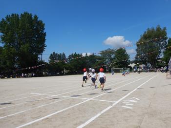 1・2年生短距離走 1年生にとっては初めての運動会種目です。2年生は、1年間の成長を示しました。