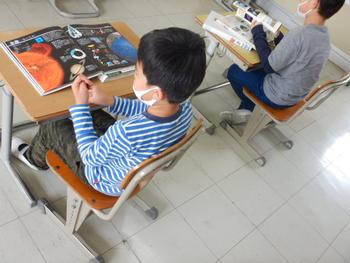 2年生国語 1・2年生には「読書の時間」があります。2年生には理科系の本が人気です。