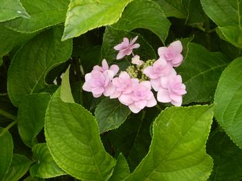校庭のアジサイが花をつけだしました。アジサイは正門前の歩道に沿って植えられています。