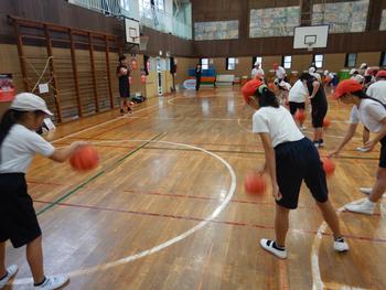 5・6年生体育 バスケットボールチームである、千葉ジェッツのコーチの方が、「バスケットボール教室」を開いてくださいました。ドリブルやシュートの基本を教わり、ミニゲームも行いました。楽しく体を動かすことができ、子どもたちにとって貴重な体験でした。今後の体育の授業で今回教えていただいたことをいかしていきます。千葉ジェッツのみなさん、ありがとうございました。