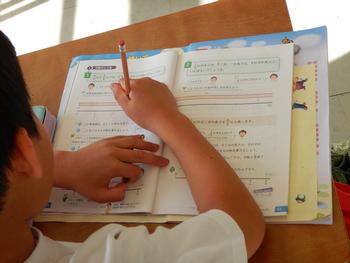 3年生算数「分数のしくみ」 分数で示された2つの数値を比較する学習を進めています。