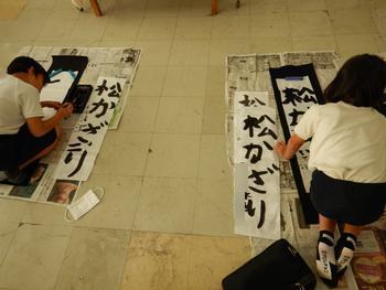 3・4年生書初め大会 3年生以上は毛筆による書き初めです。3年生のお題は「ふじ山」、4年生のお題は「松かざり」です。