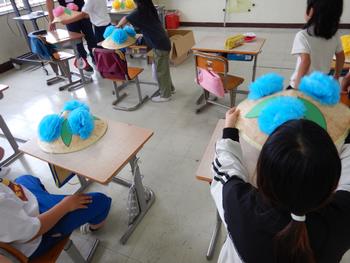 3・4年生学活 ダンスで使用する笠に飾りがつきました!華やかさが増します‼