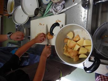 5年生家庭科 調理実習です。「青菜のおひたし」と「ゆでいも」を調理しました。試食では、子どもたちから「おいしい!」の声があがっていました。