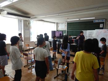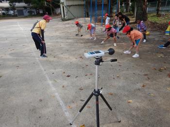 1・2年生体育 熱中症チェッカーで「暑さ指数」を確認し、日陰で体を動かしました。