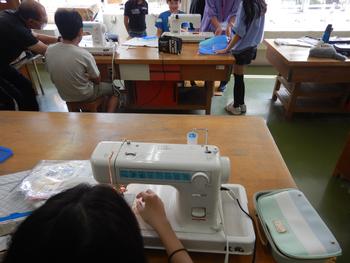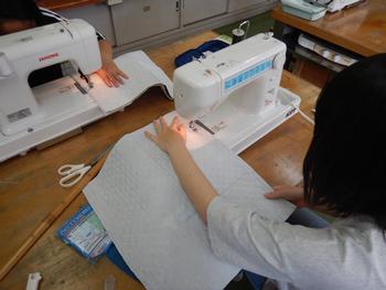 6年生家庭科「ソーイングで生活を豊かに」 ナップザックの作成です。ミシンの使用が始まりました!