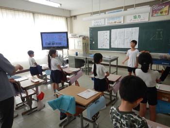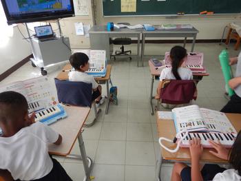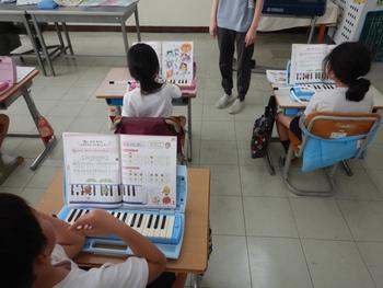 1・2年生音楽 歌声活動と、鍵盤ハーモニカの学習を進めています。歌声活動は、代表の子供が指揮を担当します。