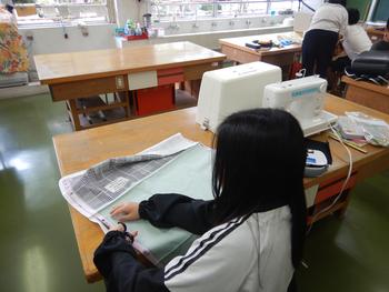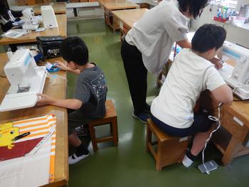 5年生「ミシンでソーイング」 仮ぬいが終了した部分があります。いよいよミシンを活用します。