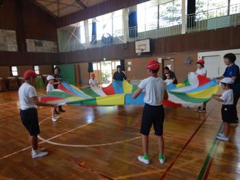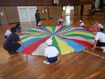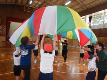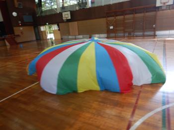 なかよし学級体育 バルーンを使用して運動をしました。個人の活動と、全員の調和が求められます!