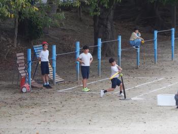 5・6年生体育「ティーボール」 暑さ指数が下がり、校庭で体育ができるようになりました!