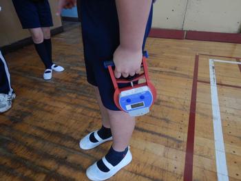 全校が3グループに分かれ、「新スポーツテスト」を行いました。多少小雨が降る時間はありましたが、今日予定していた全てのスポーツテスト(シャトルランは、昨日までに記録をとりました)を実施することができました。体育館で、「立ち幅跳び・長座体前屈・握力・上体起こし・反復横跳び」、校庭で「ボール投げ・50m走」の記録をとりました。子供たちは、今までで一番良い記録を出そうと、意欲的に取り組んでいました。