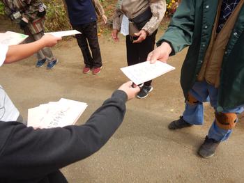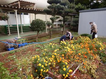 水曜日、フラワーボランティアのみなさんが活動してくださる日です。土曜参観の日には発表会があります。今日は6年生・5年生の代表が、招待状をフラワーボランティアのみなさんにお渡ししました。