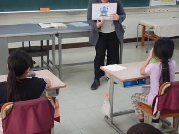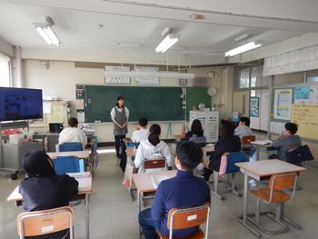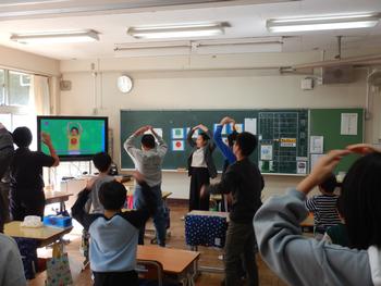 なかよし学級 LATの先生の外国語活動です。物の形の英語表現を、動作を取り入れて学習です。