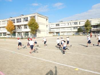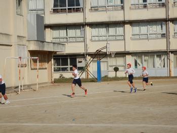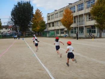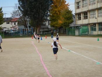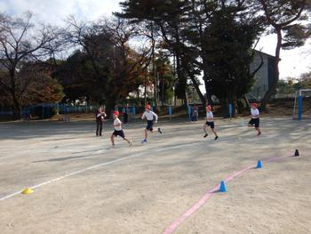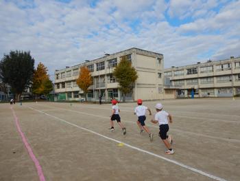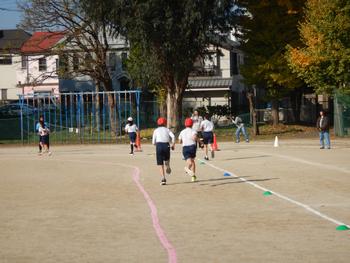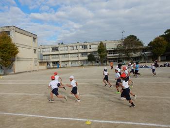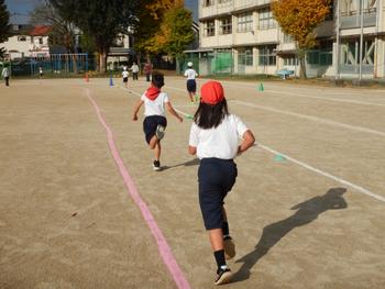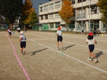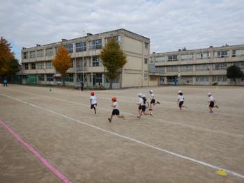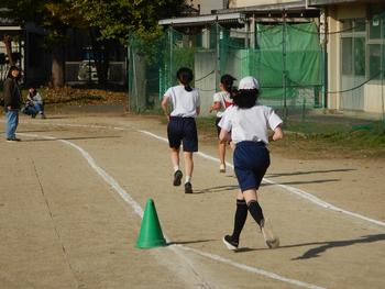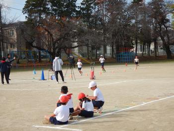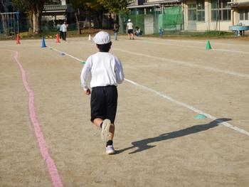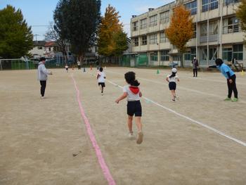 〇3・4年生持久走記録会…記録会は3・4年生のグループから始まりました。3・4年生は、大回りを2周し、1100mを走りました。4年生、3年生共に、たくましさを感じることができる走りでした。