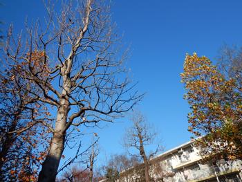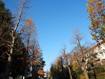 「ゆりのき通り」の木々は、ほとんど葉を落としました。朝は青空がきれいです。