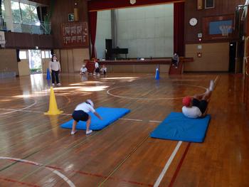 なかよし学級体育 マット運動を取り入れた活動です。ダッシュをして前回りなどに取り組みます。