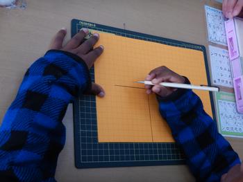 1年生図工 カッターの使い方を学びました。今後、たくさんの窓がある作品を作ります。