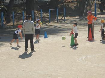 1・2年生体育「ボール投げあそび」 ねらいをさだめて、ボールをコーンにあてます!
