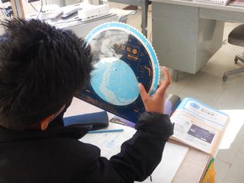 4年生理科「冬の夜空」 「星の早見板」を活用して、現在どのような星が見えるのか確認しました。