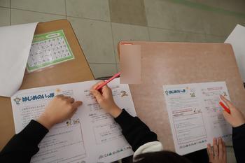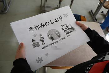 「冬休みのしおり」を活用して冬休みの生活について確認しました。安全と健康が大切です!