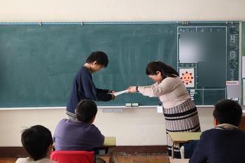 一人ひとりに通知票を渡しました。子供たちの成果の一つとして、ご確認をお願いします。