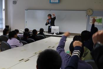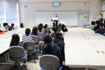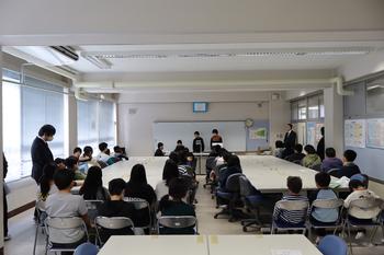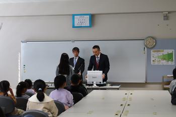 終業式はコンピュータ室で行いました。式の初めに、代表児童3名が2学期の活動について振り返りました。