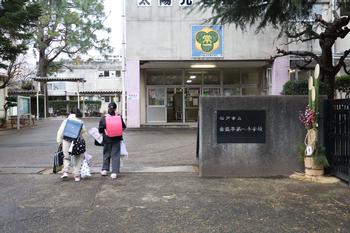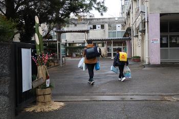 明け方に降った雪が残る部分がある中、子供たちが元気に登校してきました。