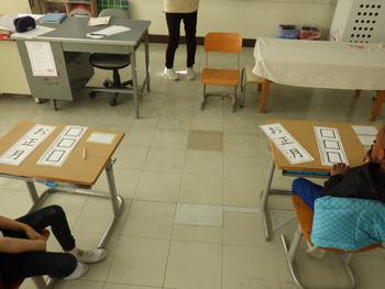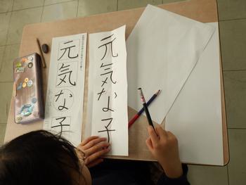 1・2年生は、フェルトペンを使用した硬筆です。文字の特徴をつかんで、丁寧に清書をしました!