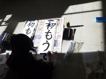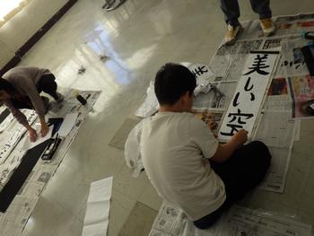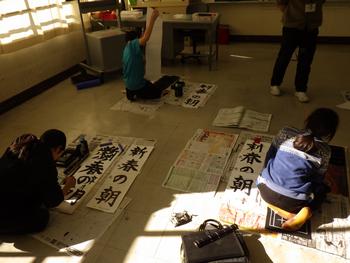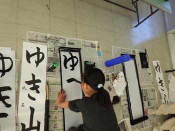 4~6年生は、毛筆です。筆にたっぷりと墨汁をつけて、気持ちをこめて書きあげました!