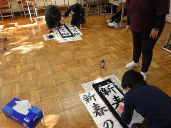 「校内書初め大会」でした。1・2年生は、フェルトペンを使用した硬筆、3~6年生は、毛筆です。子供たちは、12月から書初めの練習を積み重ねてきました。また、冬休みの課題にも書き初めの練習がありました。「書初め大会」では、一人ひとりが努力してきた成果を発揮することができました。1月16日(金)から21日(水)までは、校内書初め展です。子供たちの力作を、ぜひ見ていただきたいと思います。