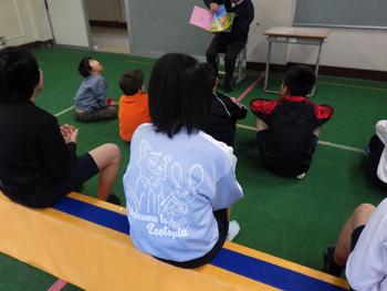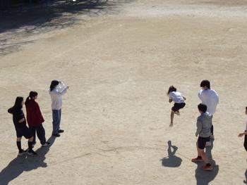 体育館が使用できないため、体育は原則として校庭で授業を行います。軽い運動の場合は、プレイルームを使用することがあります。