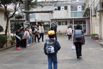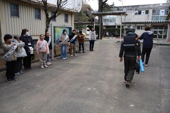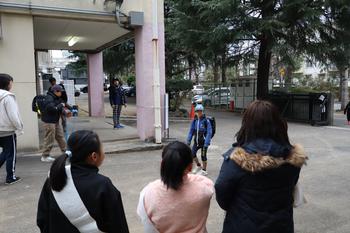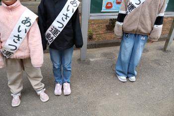 今日の「あいさつ運動」は、3年生・5年生です。厳しい寒さの中、子供たちの元気な声が響きました。